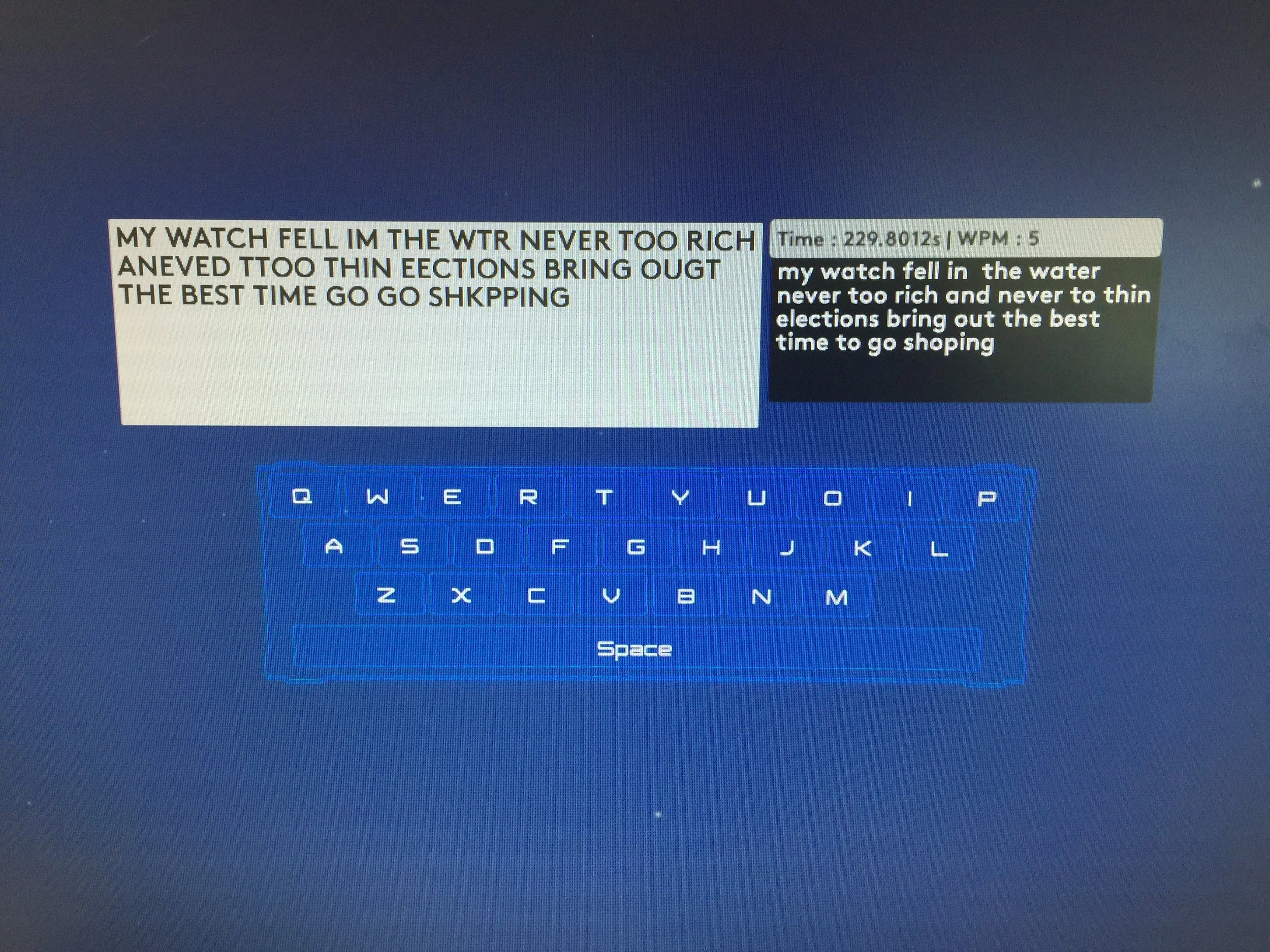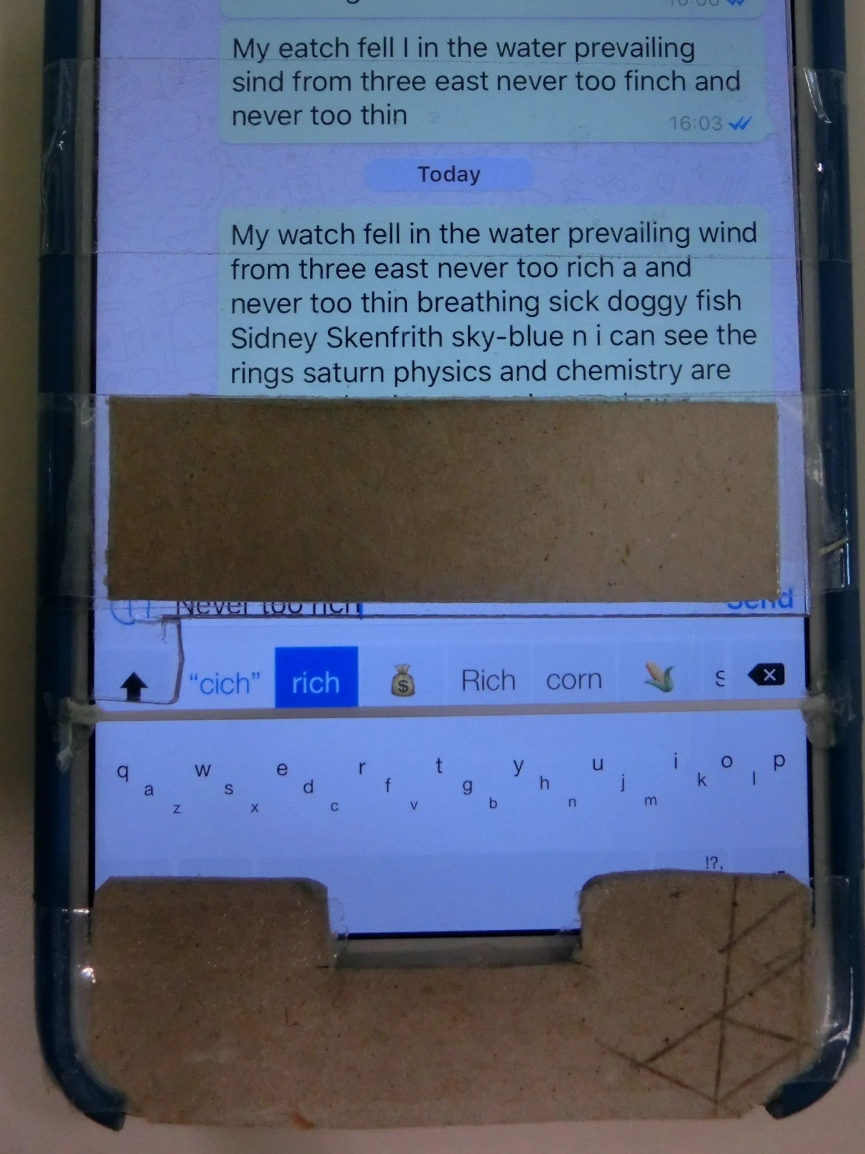 100% blind typing prototype with heavy word prediction algorithm.