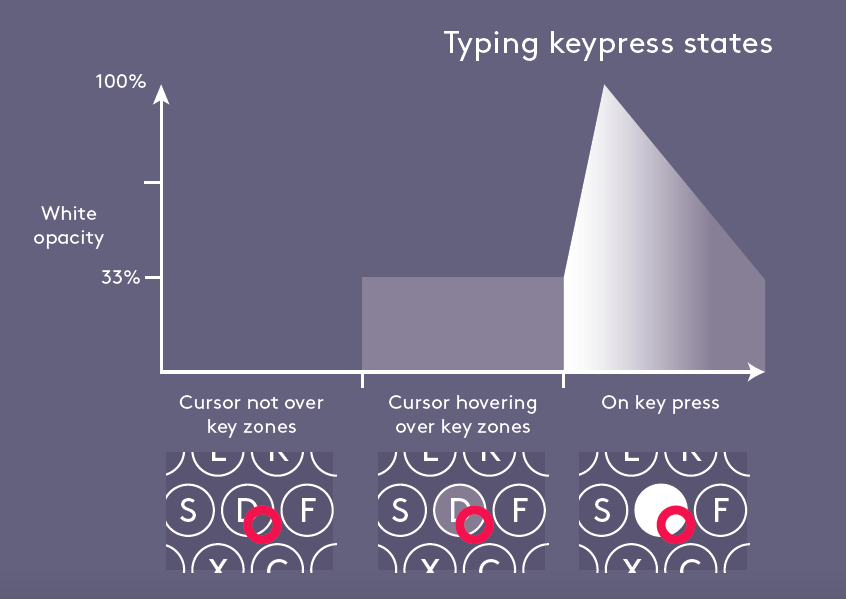 This graphic UI also represented our point of view on how the keyboard would function, cursor behaviours and all the icons and timings and ballistics required to deliver a convincing and intuitive control experience.